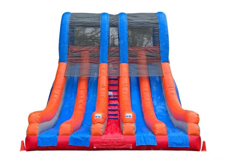 Bring the ultimate thrill to any event with the QuadRush Slide from IAP Events! Standing at 20 feet tall and featuring four side-by-side lanes, this inflatable is the largest and most exciting slide on the market, perfect for birthdays, school events, festivals, and corporate family days. Watch guests race to the bottom and compete for glory — laughter and excitement guaranteed!