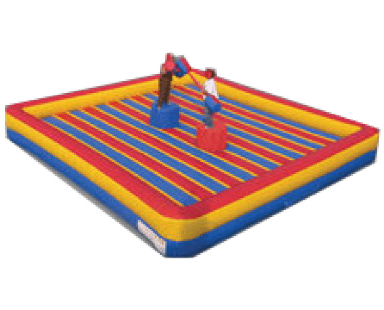 This high-energy interactive inflatable brings the thrill of classic jousting right to your backyard: two contestants stand on raised pedestals in the center, grab the soft padded jousting poles and helmets (included!), and battle to knock each other off – the last one standing claims the title of king of the joust! Surrounded by a large inflatable mat for safe, cushioned falls, bright colors, and open sides for crowd cheering, it's pure friendly competition and frustration-busting fun. Dry-use only for year-round action – perfect for ages 8-99 at birthdays, school events, church carnivals, corporate team-building, block parties, or any Raleigh-area gathering where you want laughs, competition, and crowd-drawing excitement!
