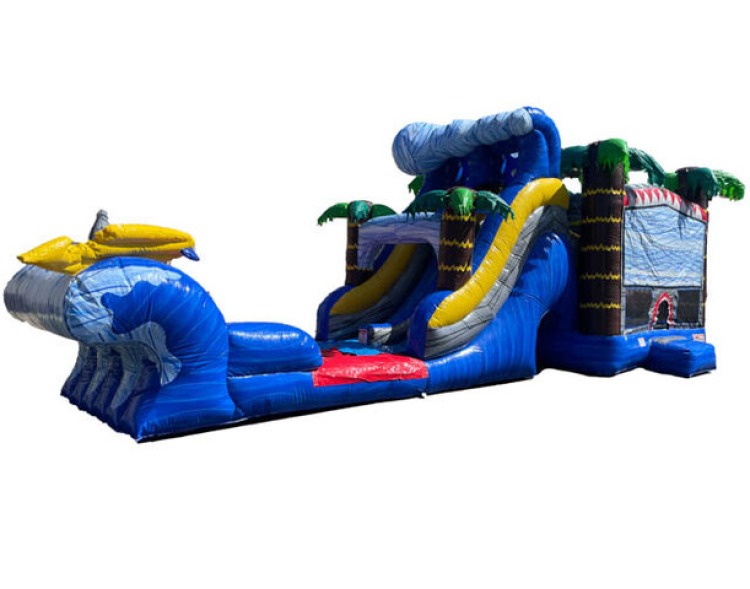 Add excitement to any party with the Shark Attack Bounce Slide Combo!